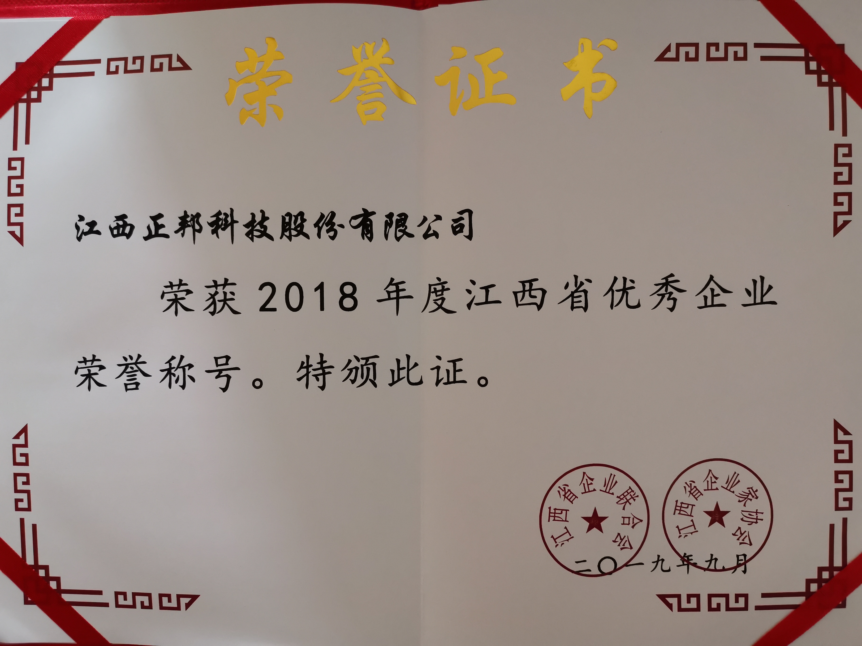 2018年度江西省優(yōu)秀企業(yè)(獎牌)
