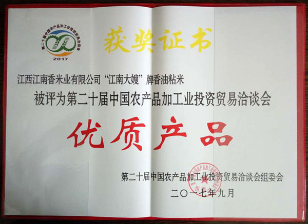 江南大嫂優(yōu)質(zhì)產(chǎn)品獎